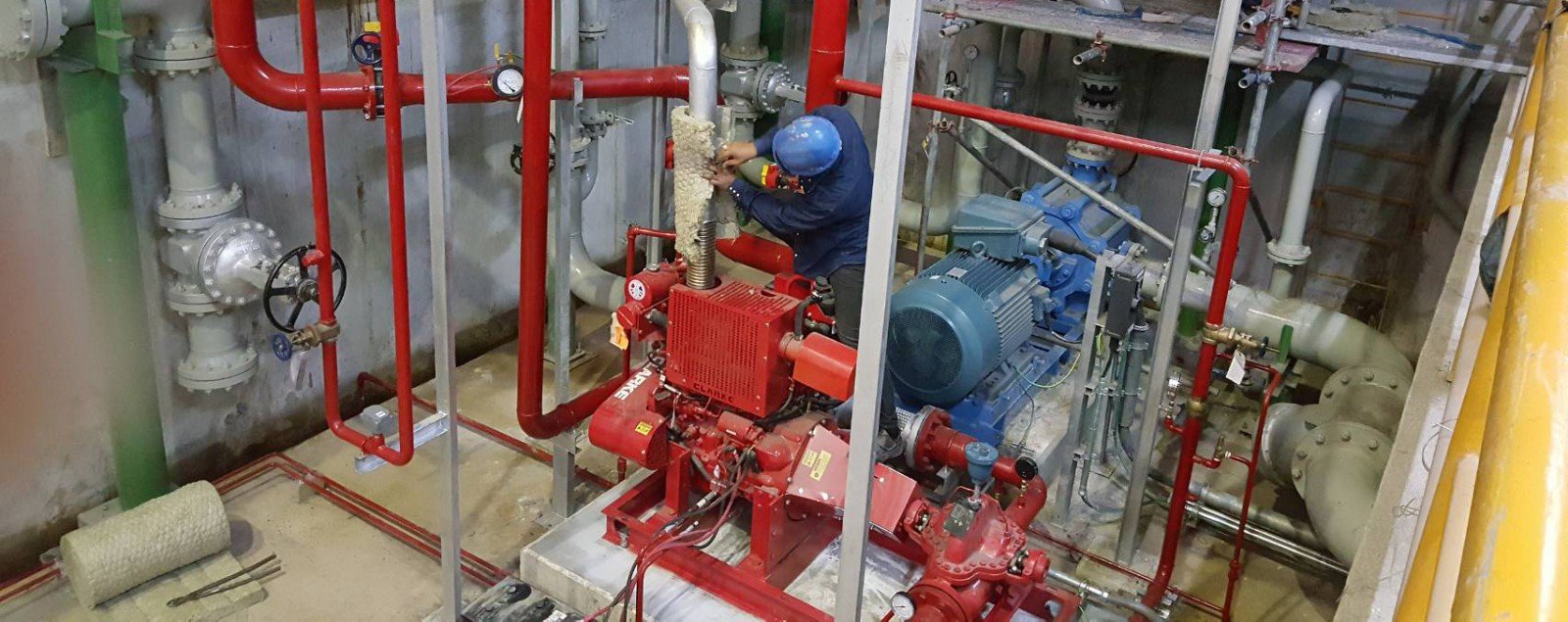 ติดตั้งระบบไฟฟ้าและสื่อสาร ระบบสุขาภิบาลและดับเพลิง ระบบหล่อเย็นและระบบปรับอากาศ อาคารโรงงาน